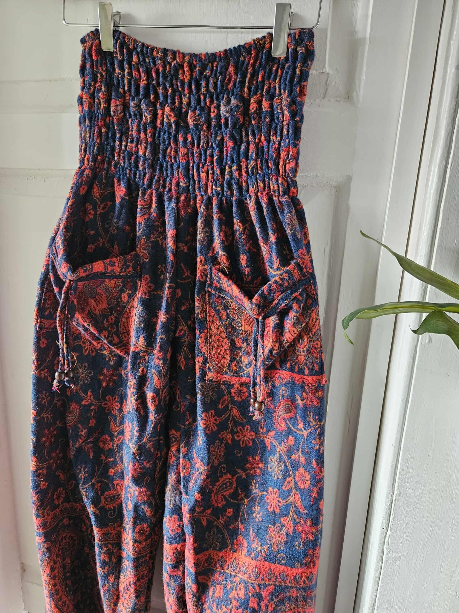 Boho Fleece Pants/ trousers - Unisex - Blue & Red